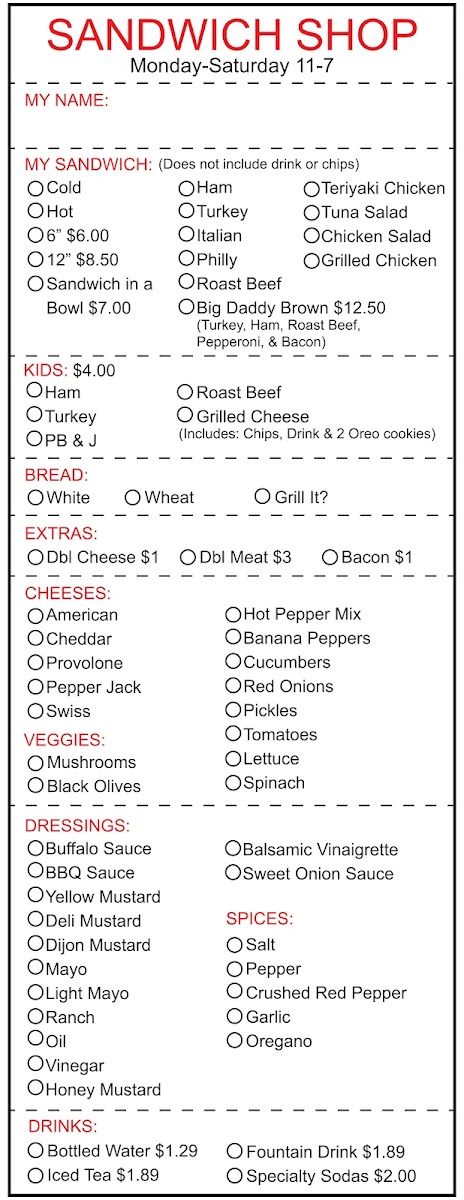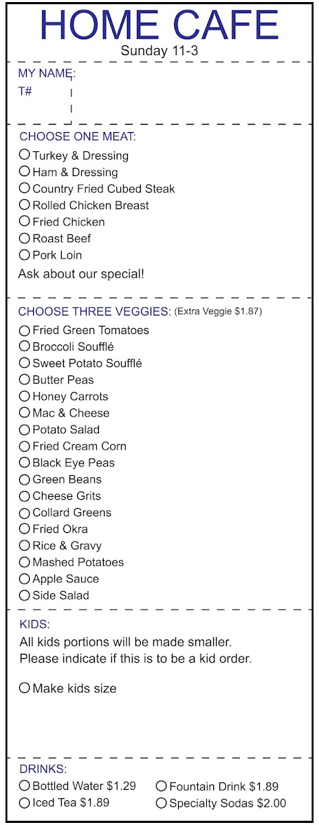 Home Cafe and Sandwich Shop Menu